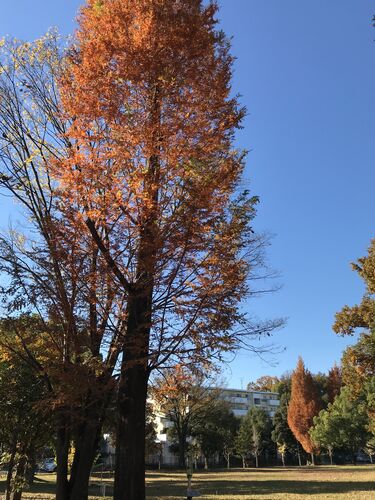 埼玉も、あっというまに紅葉が散りはじめています。マンション前の公園。ケヤキはもうほとんど散っちゃいました。これはメタセコイア。
